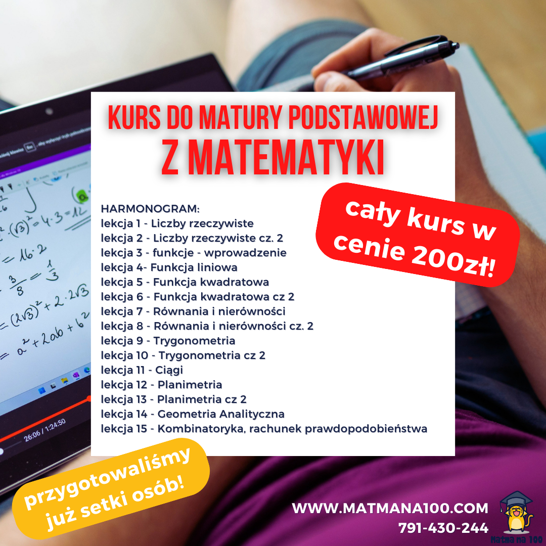 200 zł za cały kurs dzięki któremu przygotujesz się do matury podstawowej z matematyki!